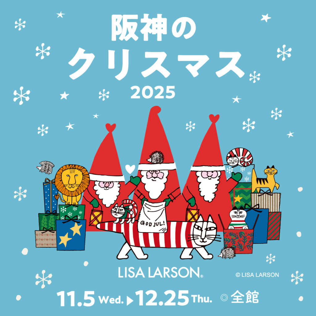2025年の阪神のクリスマスとリサ・ラーソンのコラボレーション! 阪神梅田本店の全館が、リサ・ラーソン一色に。 2025年11月5日(水)~12月25日(木)の期間、全館装飾、イルミネーション